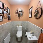 Incorporating a pedestal wash hand basin, WC, tiled splash areas, extractor fan and a radiator.