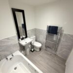 Incorporating a modern three piece suite comprising of a shower cubicle, pedestal wash hand basin and WC. Extractor fan, heated towel rail, LVT flooring, tiling to all walls and inset ceiling lights.