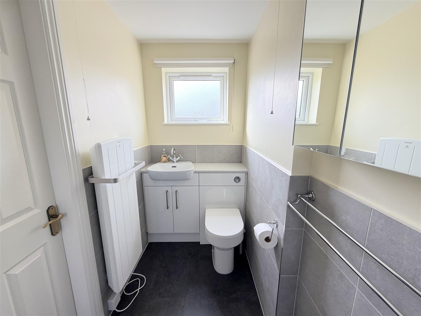 Incorporating a double glazed obscured window to rear, radiator, pedestal wash hand basin, WC, tiled splash areas and coving to the ceiling.