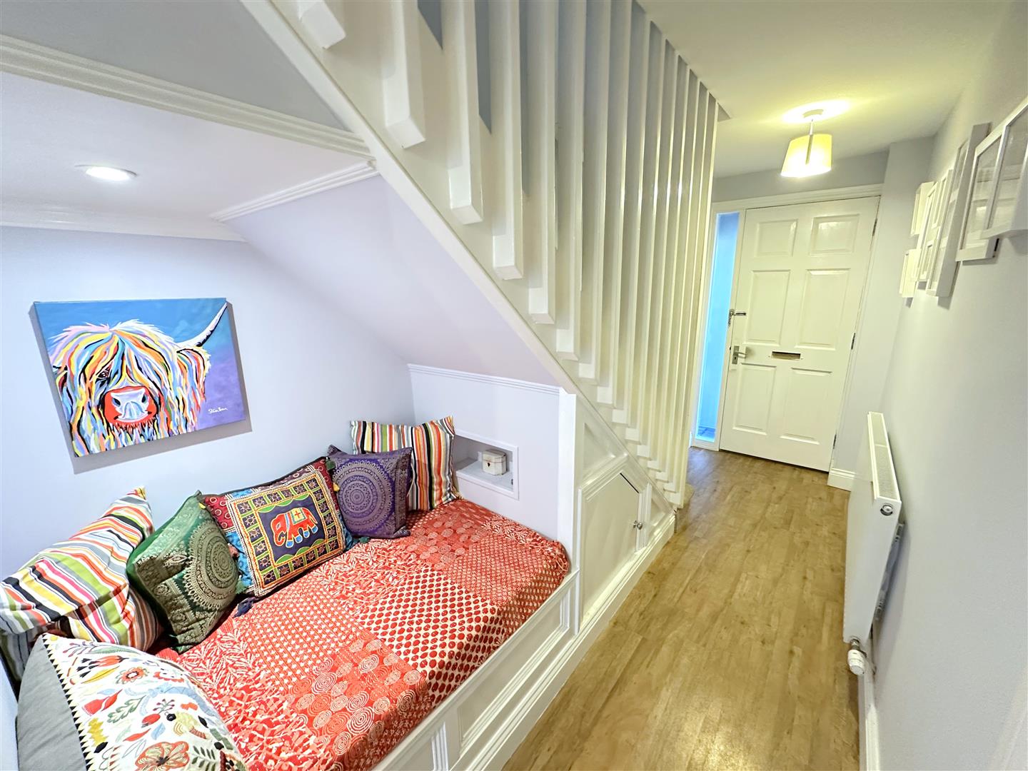 Incorporating a radiator, vinyl flooring, radiator, under stairs seating area, stairs to the first floor and two good sized storage cupboards.