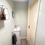 Incorporating tiled floor, space for a tumble dryer and door to rear.