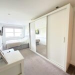 A double bedroom incorporating a double glazed window to front, radiator, inset ceiling lights and built in storage cupboard.