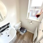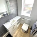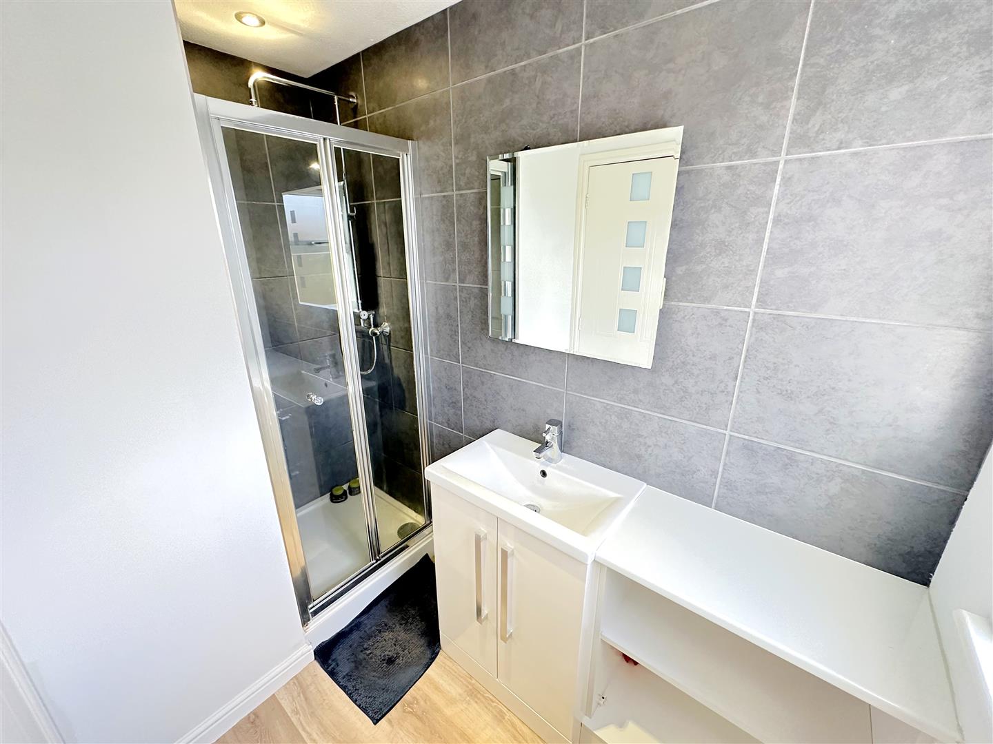 Incorporating a three piece suite comprising of a shower cubicle, wash hand basin set to vanity unit and WC. Double glazed obscured window to side, heated towel rail, tiled splash areas and extractor fan.