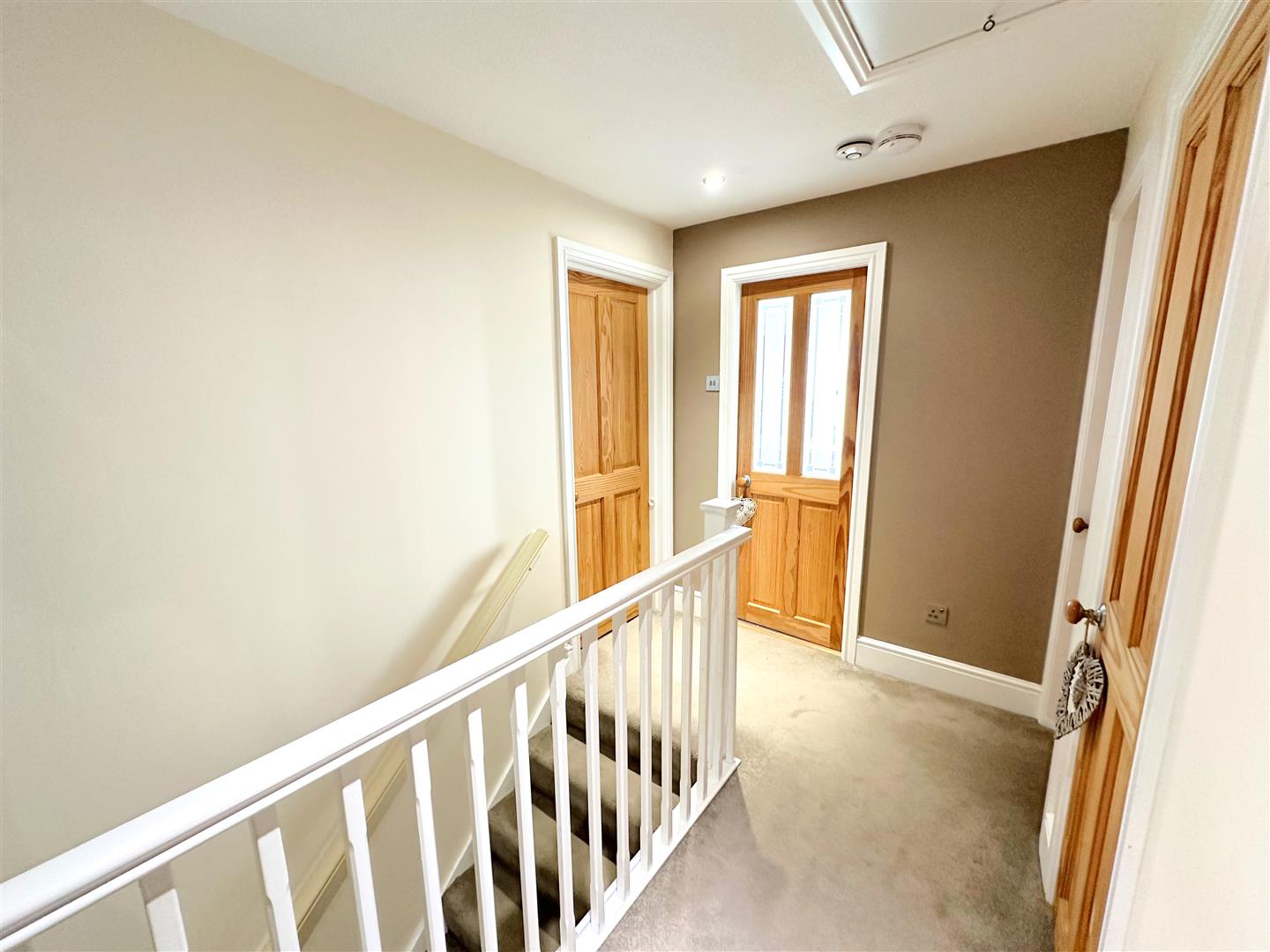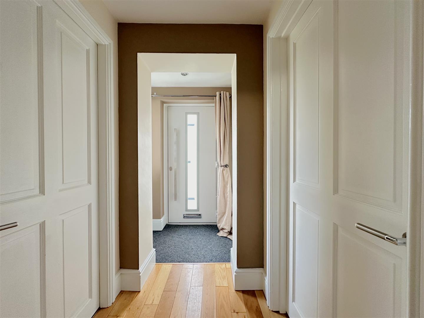 Approached by a door to front, incorporating a double glazed window to side, oak flooring, inset ceiling lights and stairs to the first floor.