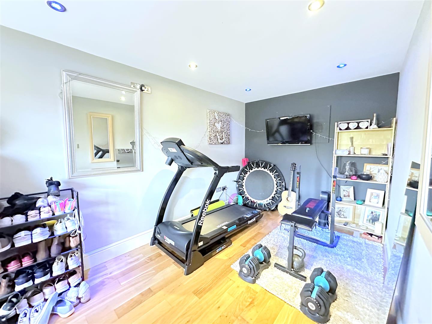 Incorporating double glazed french doors to rear, wood flooring, radiator, inset ceiling lights and coving to the ceiling.