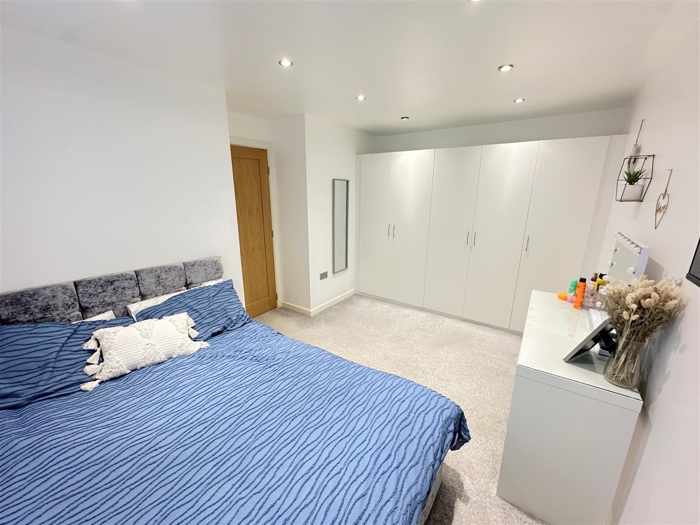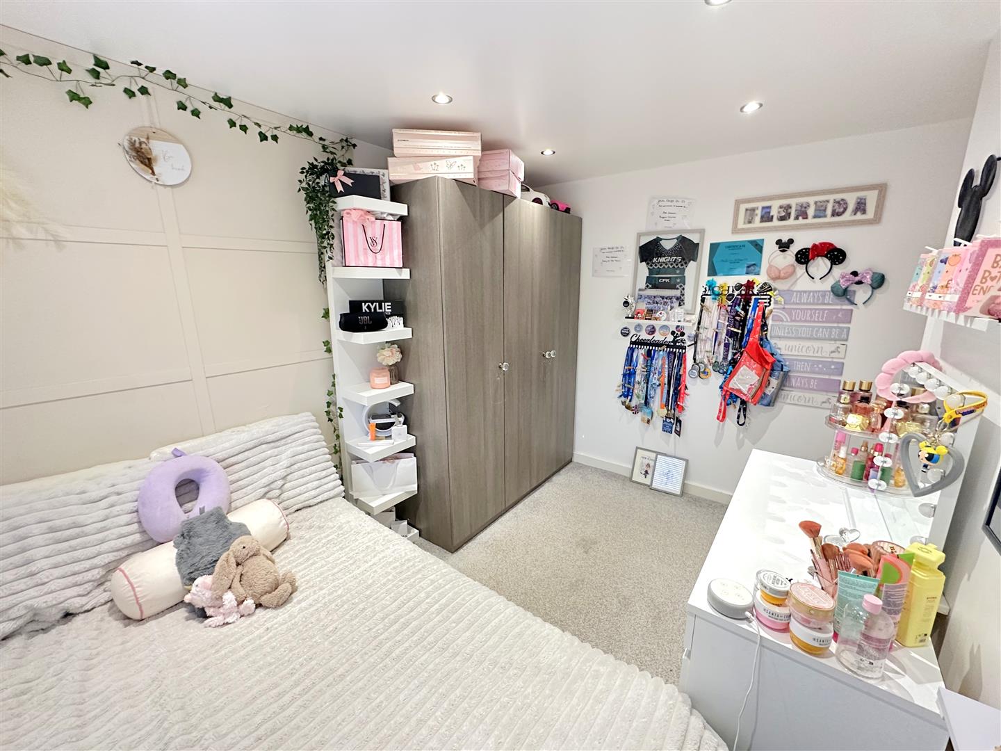 A double bedroom incorporating a double glazed window to rear, radiator, fitted wardrobe/storage and inset ceiling lights.