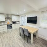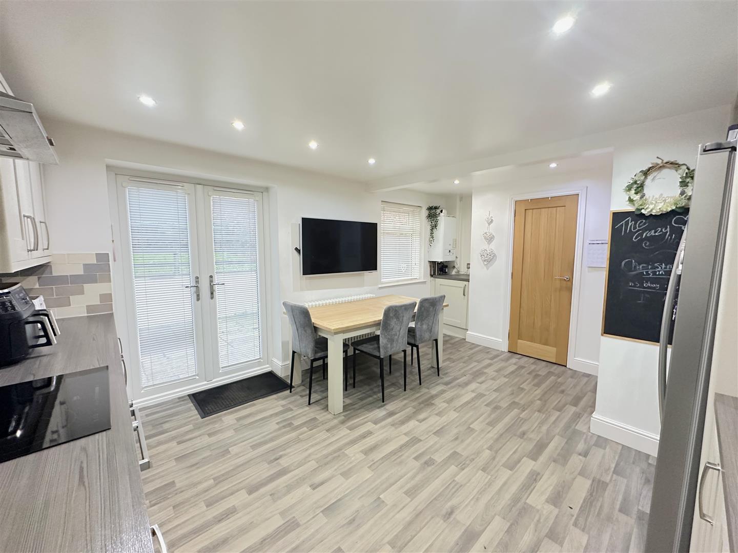 Incorporating a range of fitted wall and base units with complementary work surface over, integrated oven and integrated hob with cooker hood over. Tiled splash areas, 1.5 sink unit with mixer tap, space for a fridge/freezer and plumbing for a washing machine. Double glazed french doors to rear, double glazed window to rear, radiator and inset ceiling lights.