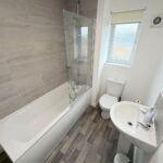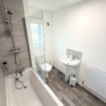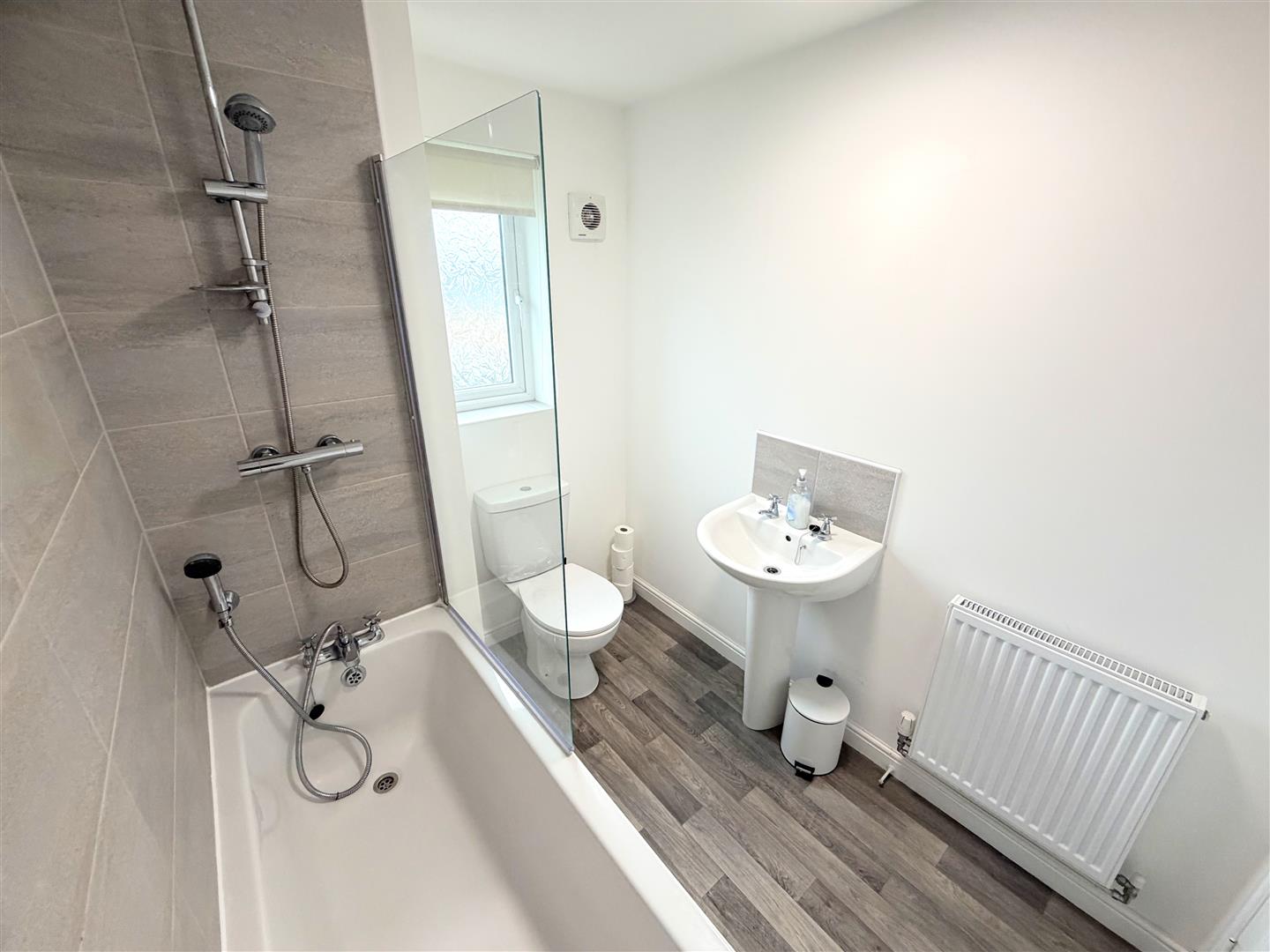 Incorporating a modern three piece suite comprising of a bath with shower attachment & shower over, pedestal wash hand basin and WC. Double glazed obscured window to rear, radiator, tiled splash areas and extractor fan.