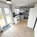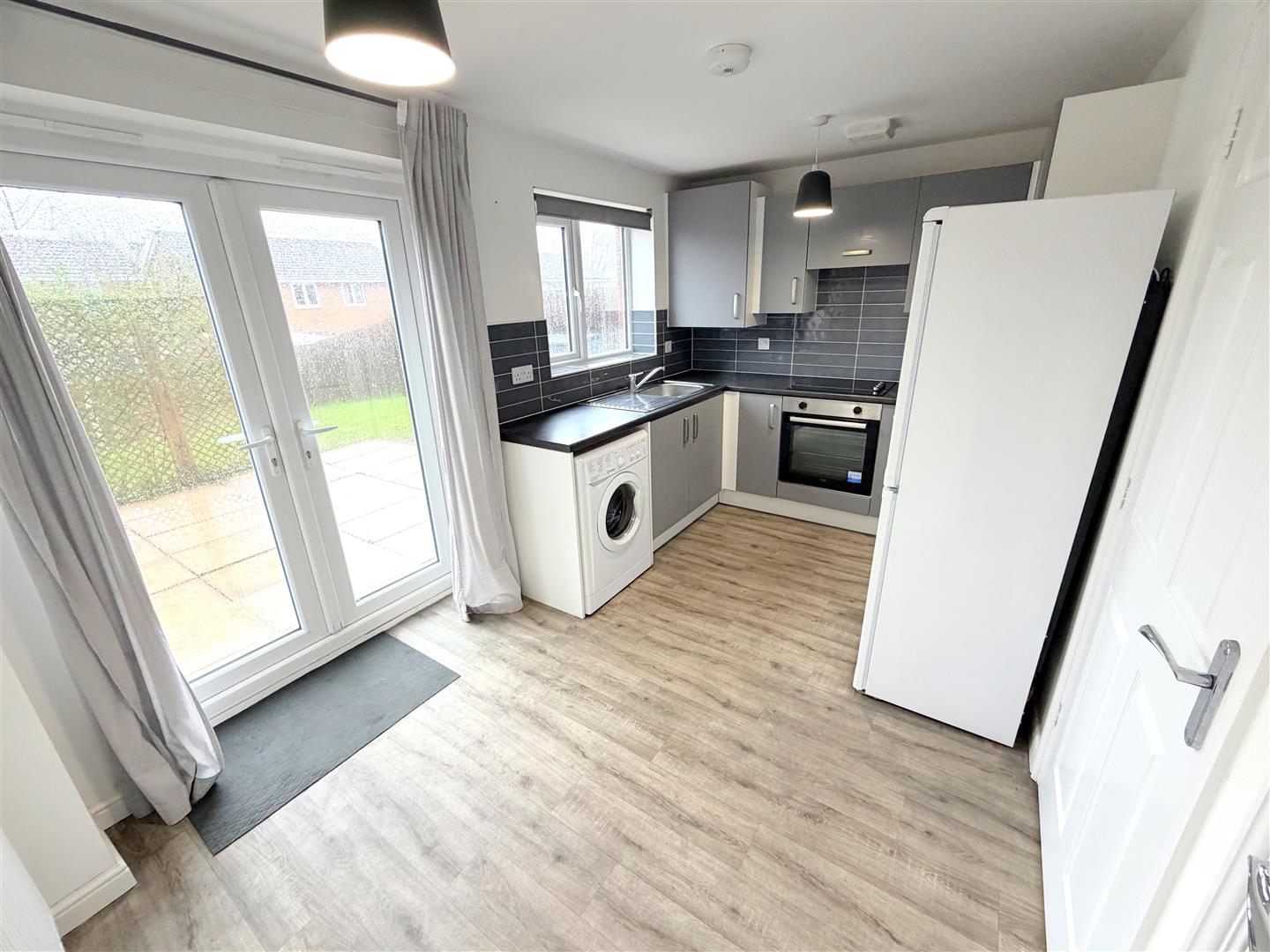 Incorporating a range of modern fitted wall and base units with complementary work surface over, integrated oven and integrated hob with cooker hood over. Sink unit with mixer tap, plumbing for a washing machine, space for a fridge/freezer, double glazed window to rear, double glazed french doors to rear and a radiator.