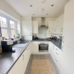 Incorporating a range of modern fitted wall and base units with complementary work surface over, integrated oven and integrated hob with cooker hood over. Integrated dishwasher, 1.5 sink unit with mixer tap, integrated fridge, integrated freezer and an integrated washing machine. Double glazed french doors to rear, double glazed window to rear, radiator, inset ceiling lights and extractor fan.