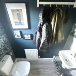 Incorporating a wash hand basin, WC, double glazed obscured window to front, radiator, tiled splash areas, inset ceiling light and extractor fan.