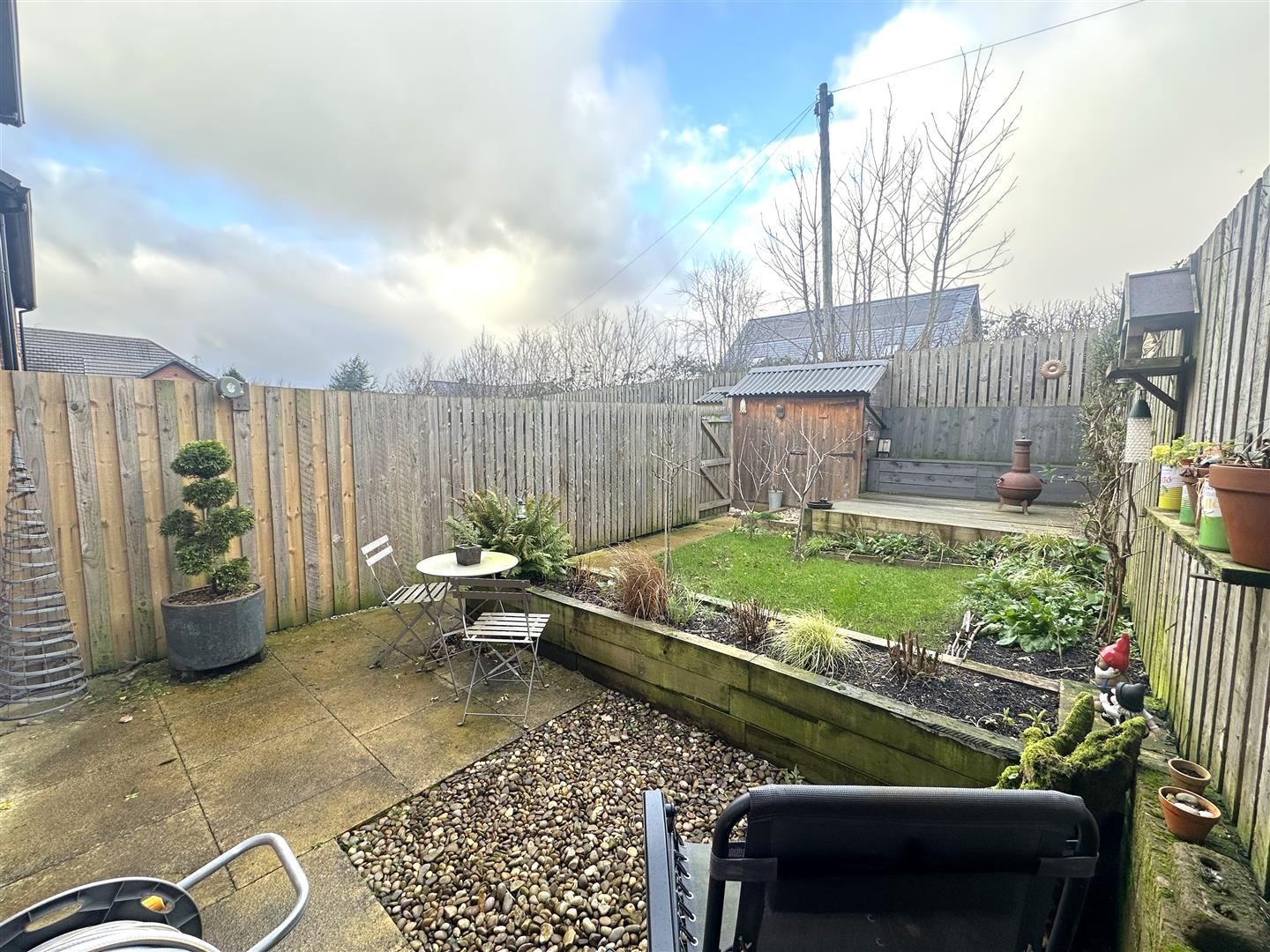 The property is approached by block paved on site parking for two vehicles. To the rear of the property there is an enclosed garden with patio seating area, lawn area, shillied area, raised flower & shrub beds, timber decked seating area and an outside tap. There is gated access to the side lane which has access to the front of the properties.