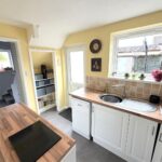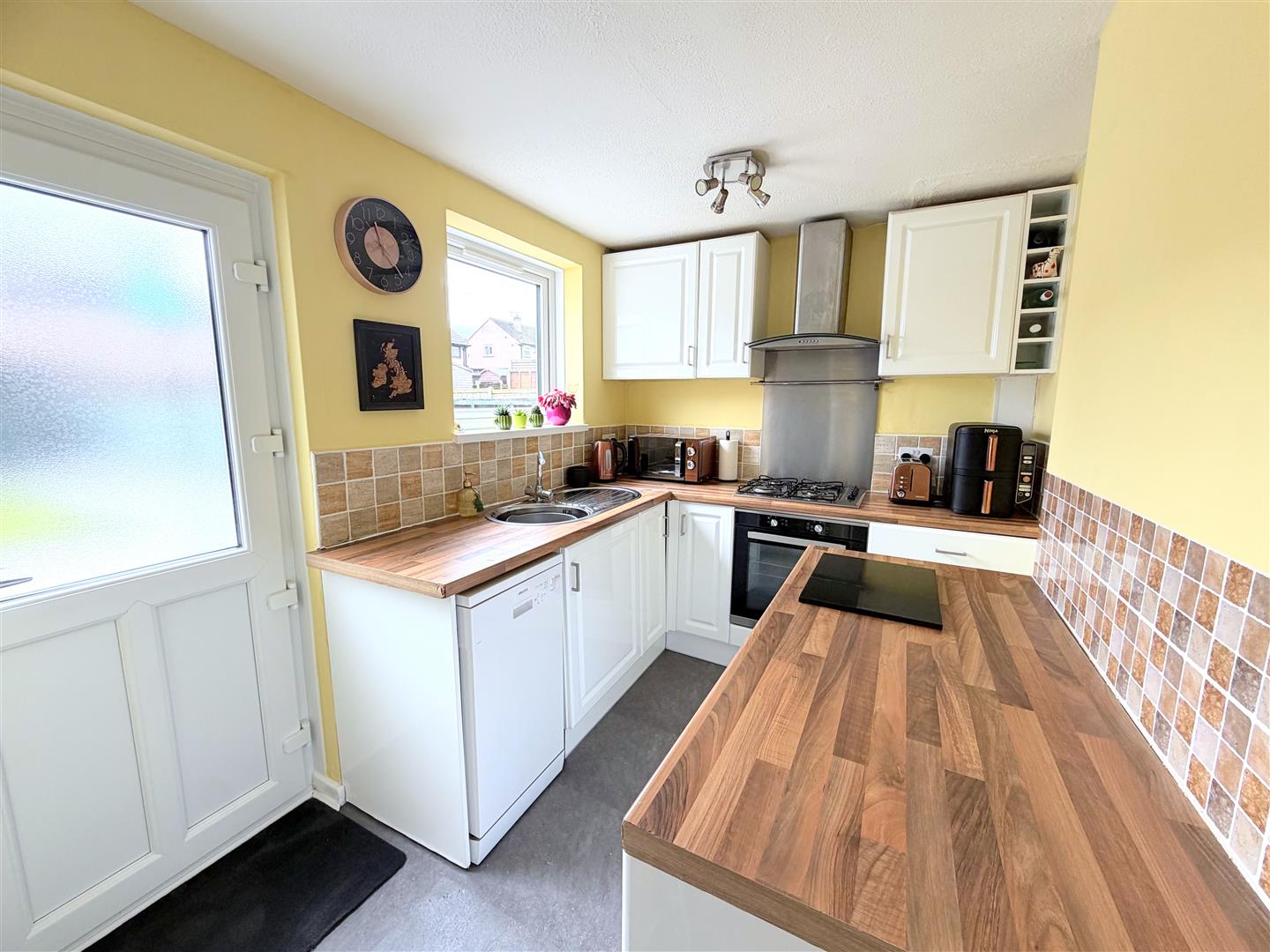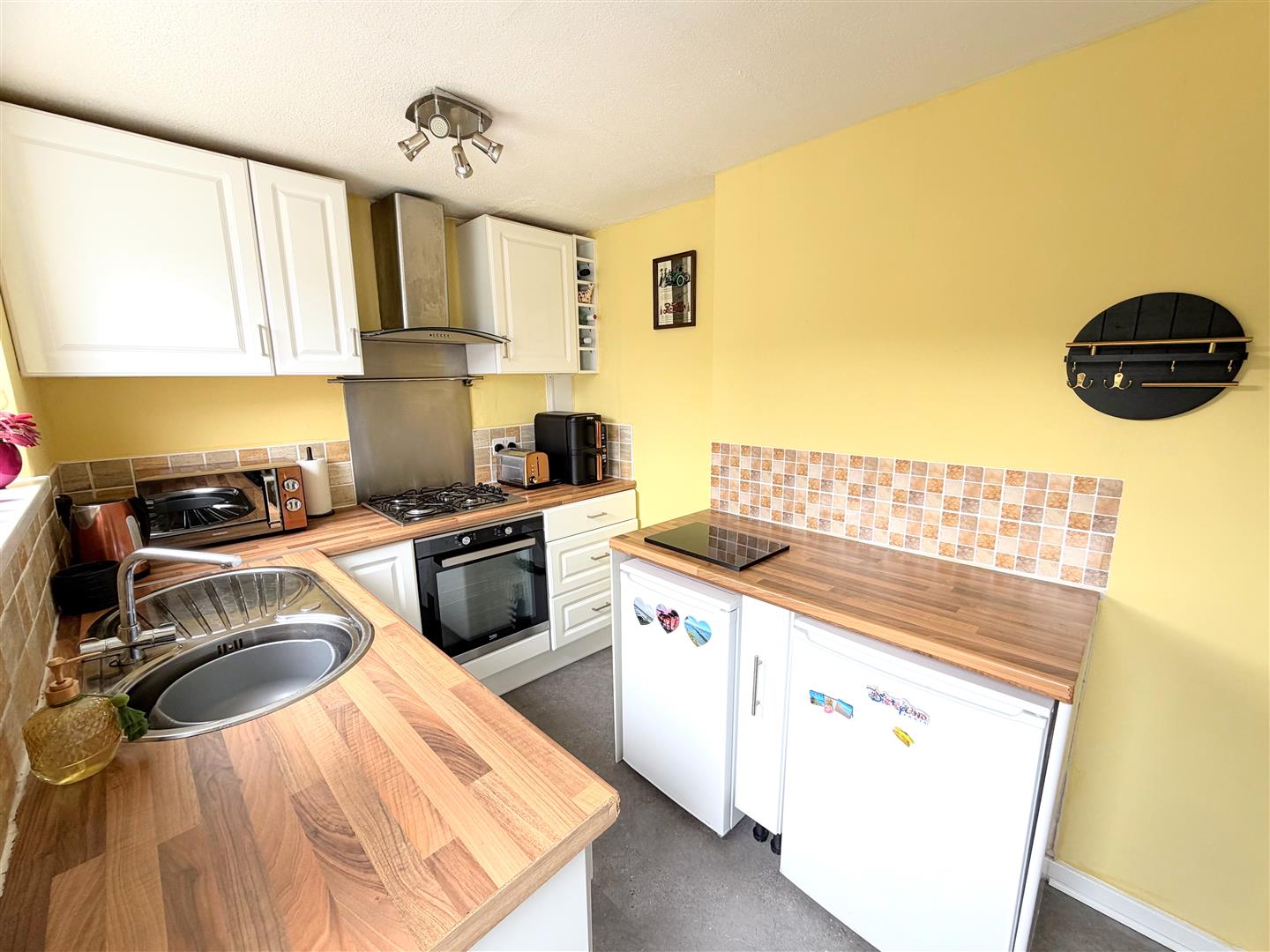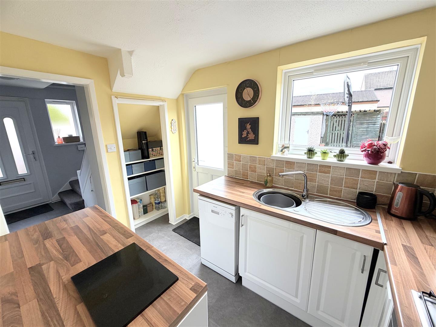 Incorporating a range of fitted wall and base units with complementary work surface over, integrated oven and integrated hob with cooker hood over. Sink unit with mixer tap, plumbing for a dishwasher and space for under counter fridge and freezer. Double glazed window to rear, door to rear, store/pantry area and vinyl flooring.