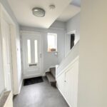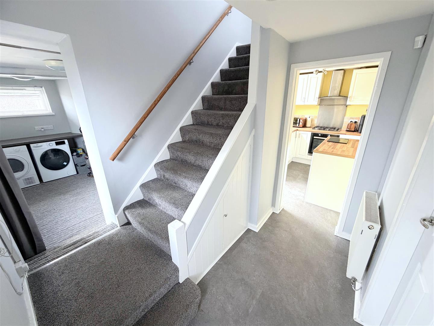 Approached by a door to side, incorporating a radiator, vinyl flooring, under stairs storage cupboard and stairs to the first floor.