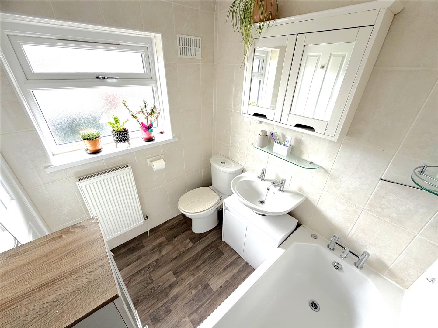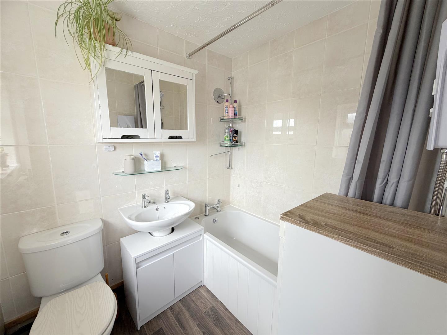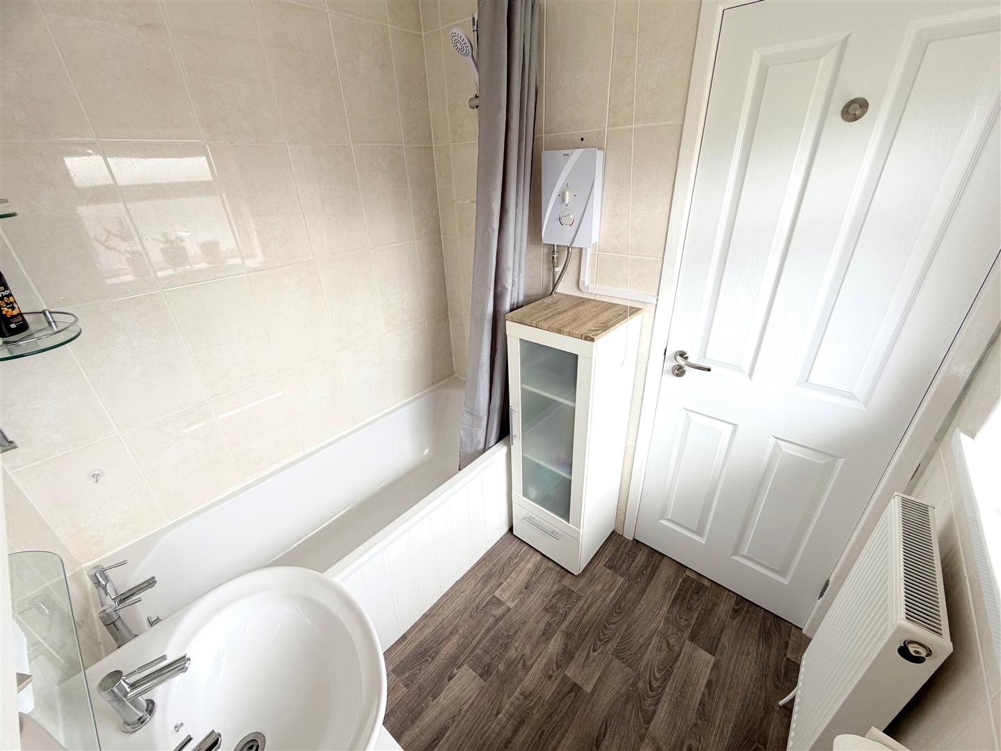 Incorporating a three piece suite comprising of a bath with shower over, pedestal wash hand basin and WC. Double glazed obscured window to rear, radiator and tiling to all walls.