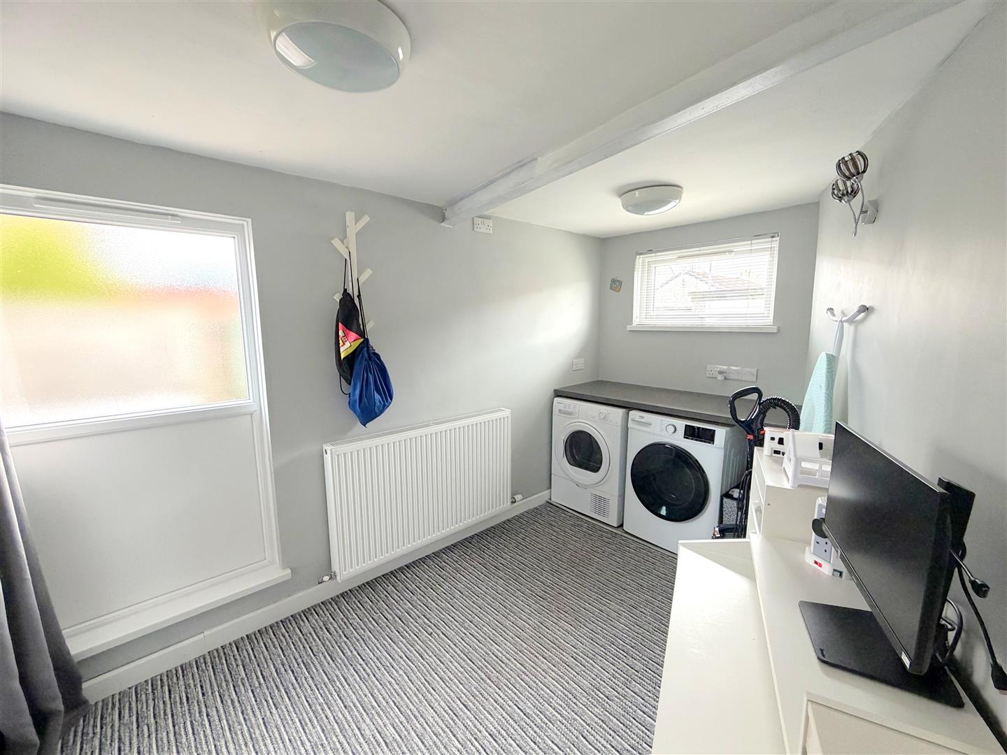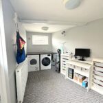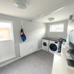 Incorporating a work surface, plumbing for a washing machine, space for a tumble drier, double glazed obscured window to side, double glazed window to rear and a radiator.