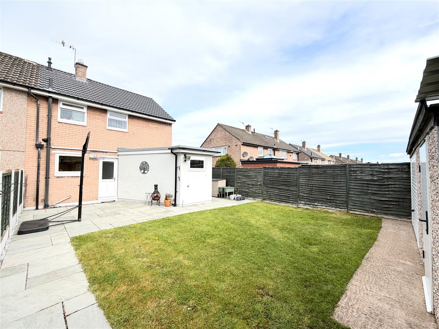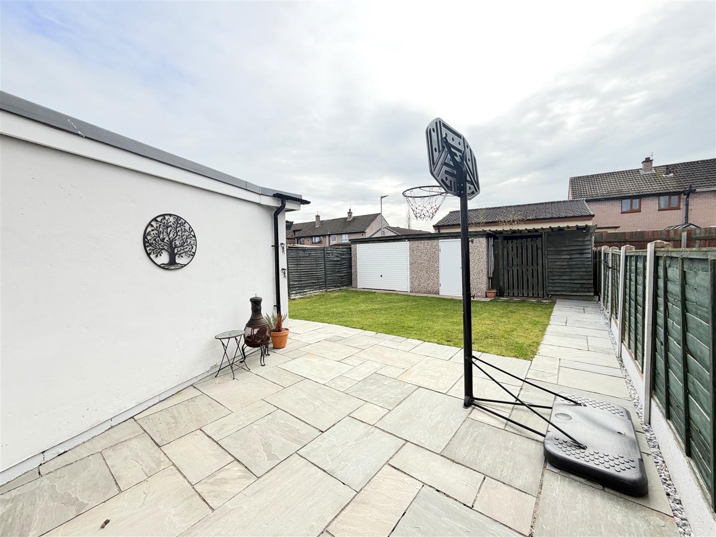 The property is approached by a driveway and shillied area with double gated access to the rear garden. To the rear of the property there is a good sized garden with a patio seating area, lawn area, outside tap, spacious garage and store.