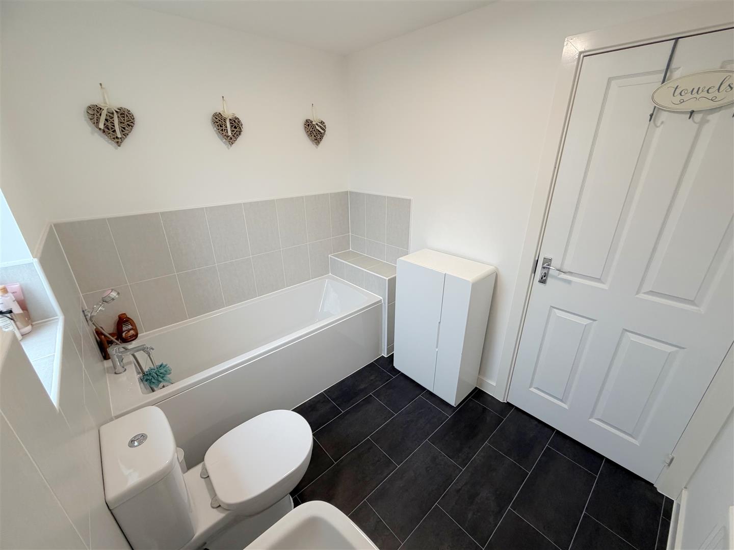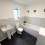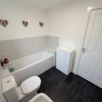Incorporating a modern three piece suite comprising of a bath with mixer tap & shower attachment, pedestal wash hand basin and WC. Double glazed obscured window to rear, radiator, tiled splash areas and extractor fan.