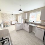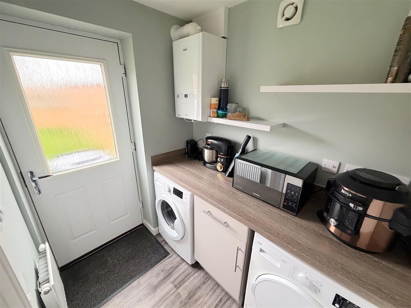 Incorporating a range of modern fitted base units with complementary work surface over, plumbing for a washing machine, space for a tumble dryer, door to rear, radiator and extractor fan.