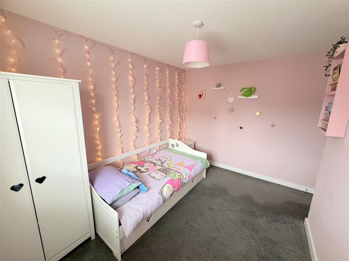 Incorporating a double glazed window to side, loft access and built in storage cupboard.