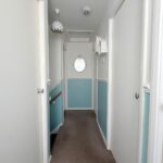 Incorporating plumbing for a washing machine, double glazed window to side and door to side.