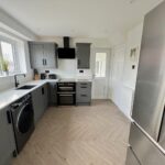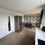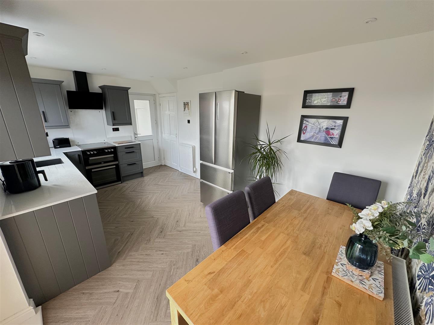 Incorporating a range of modern fitted wall and base units with complementary work surface over, oven point and cooker hood over. Sink unit with mixer tap, plumbing for a washing machine, space for a fridge/freezer, double glazed window to rear and double glazed french doors to rear. Radiator, laminate floor, under stairs storage cupboard and inset ceiling lights.