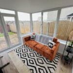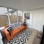 Incorporating an electric up and over door, power, lighting and door into the garden room.