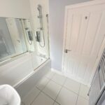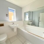 Incorporating a three piece suite comprising of a bath with shower over & mixer tap, wash hand basin and WC. Double glazed obscured window to side, heated towel rail, tiled floor, tiled splash areas and inset ceiling lights.