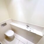 Incorporating a wash hand basin, WC, tiled splash areas, tiled floor, radiator, inset ceiling lights and extractor fan.