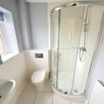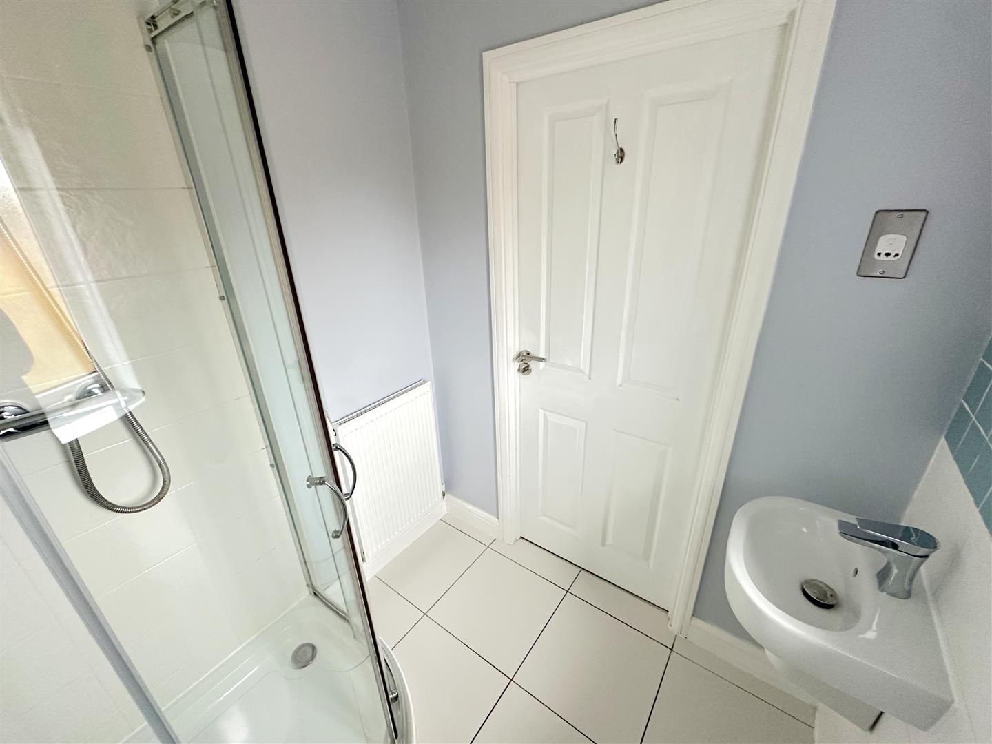 Incorporating a three piece suite comprising of a shower cubicle, wash hand basin and WC. Double glazed obscured window to front, radiator, tiled floor, tiled splash areas, extractor fan and inset ceiling lights.
