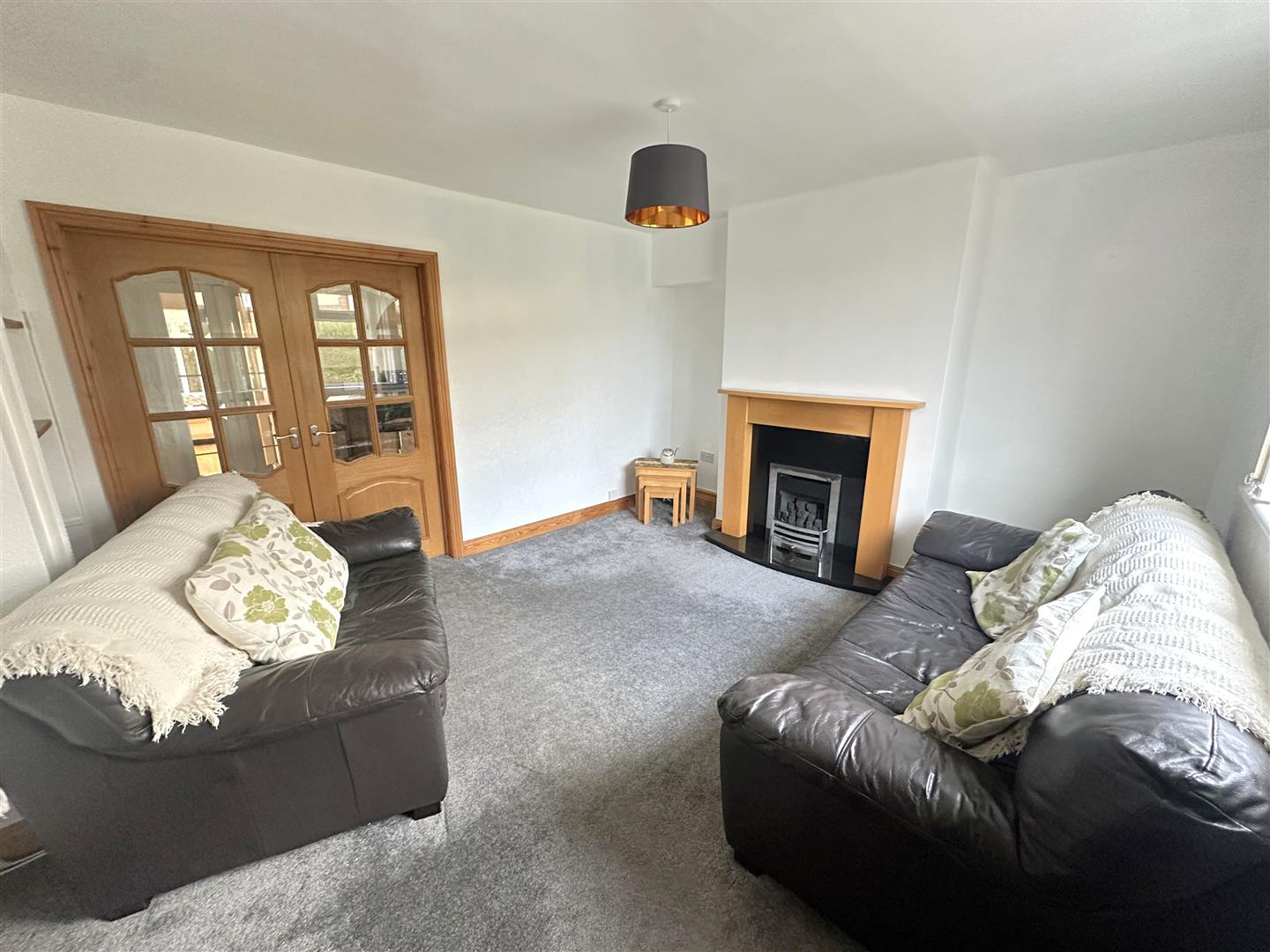 Incorporating a double glazed window to front, electric heater, french doors to the dining kitchen and a feature fireplace with surround, inset and hearth.