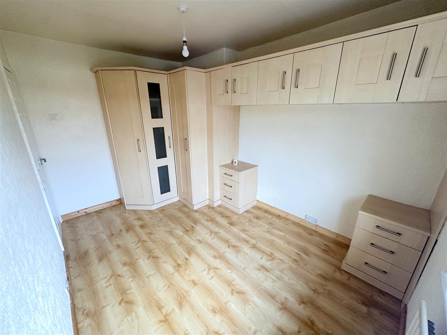 A double bedroom incorporating a double glazed window to front, radiator, fitted wardrobe/storage and laminate floor.