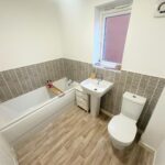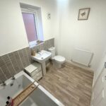 Incorporating a modern three piece suite comprising of a bath, pedestal wash hand basin and WC. Double glazed obscured window to side, radiator, tiled splash areas and extractor fan.