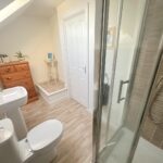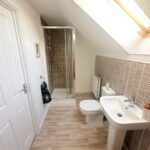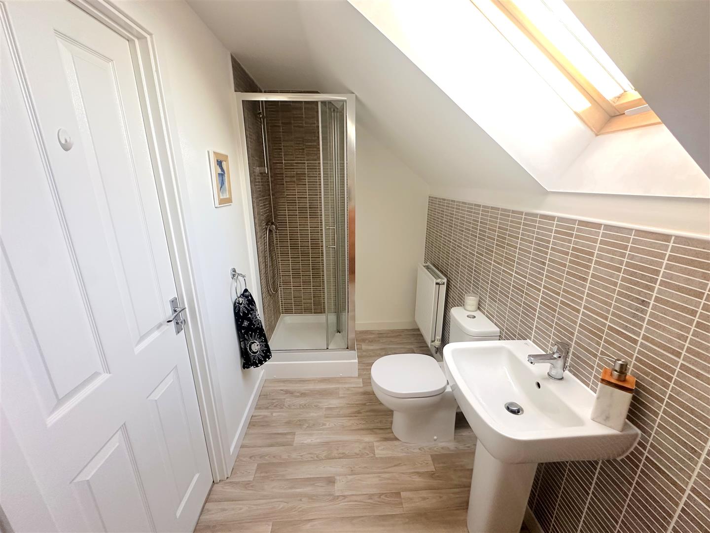 Incorporating a modern three piece suite comprising of a shower cubicle, pedestal wash hand basin and WC. Double glazed skylight to rear, radiator, tiled splash areas and extractor fan.